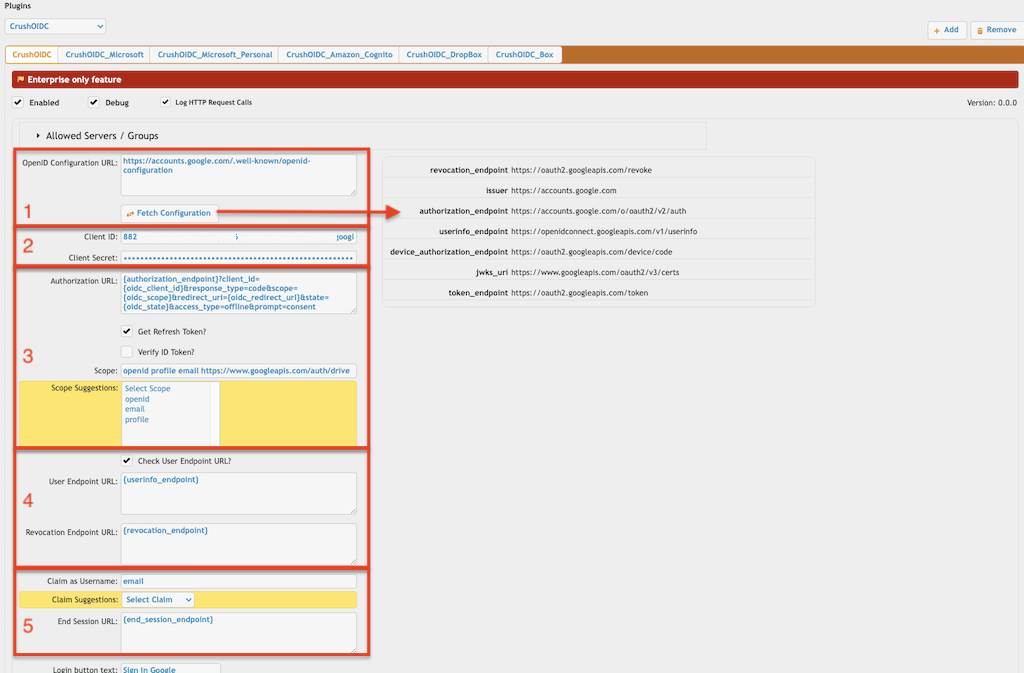 ⚠️ Important: To obtain the Refresh Token, the CrushFTP WebInterface’s host and port must match the Redirect URL specified in the Azure App Registration. In our example, it was: http://localhost:9090 or https://your.crushftp.domain.com/