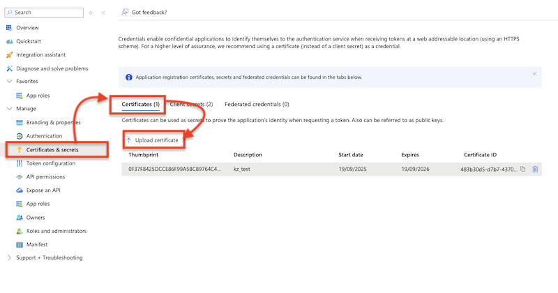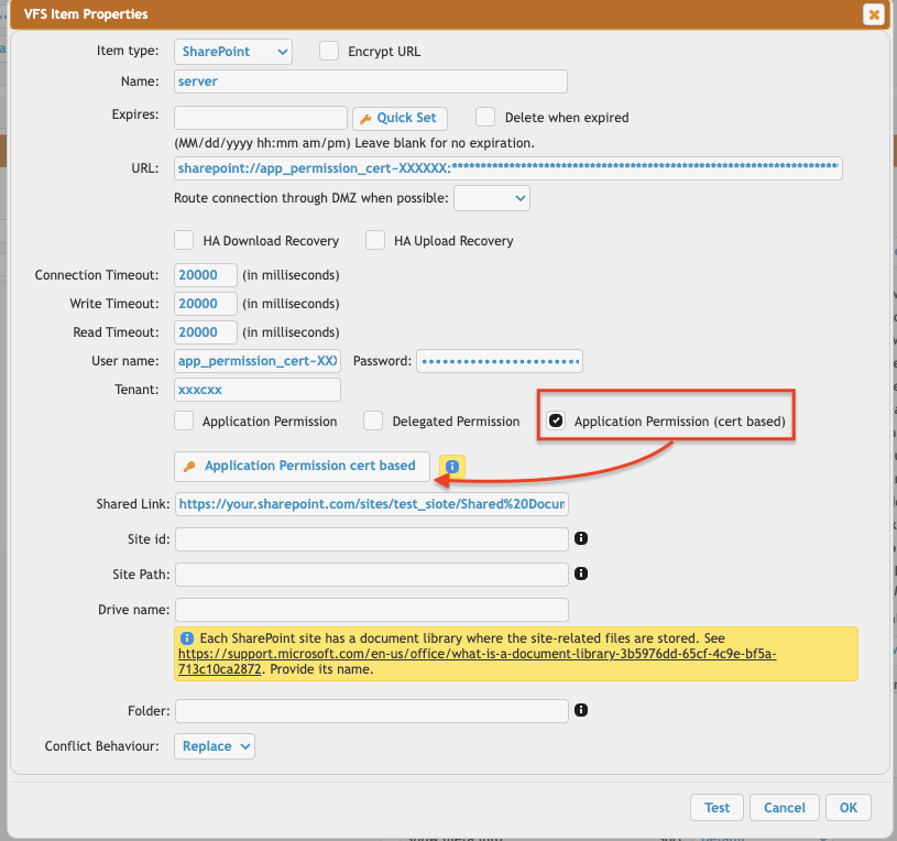 : Application permissions are used when an application runs without a signed-in user, such as in server-to-server connections.• Cert Based authentication